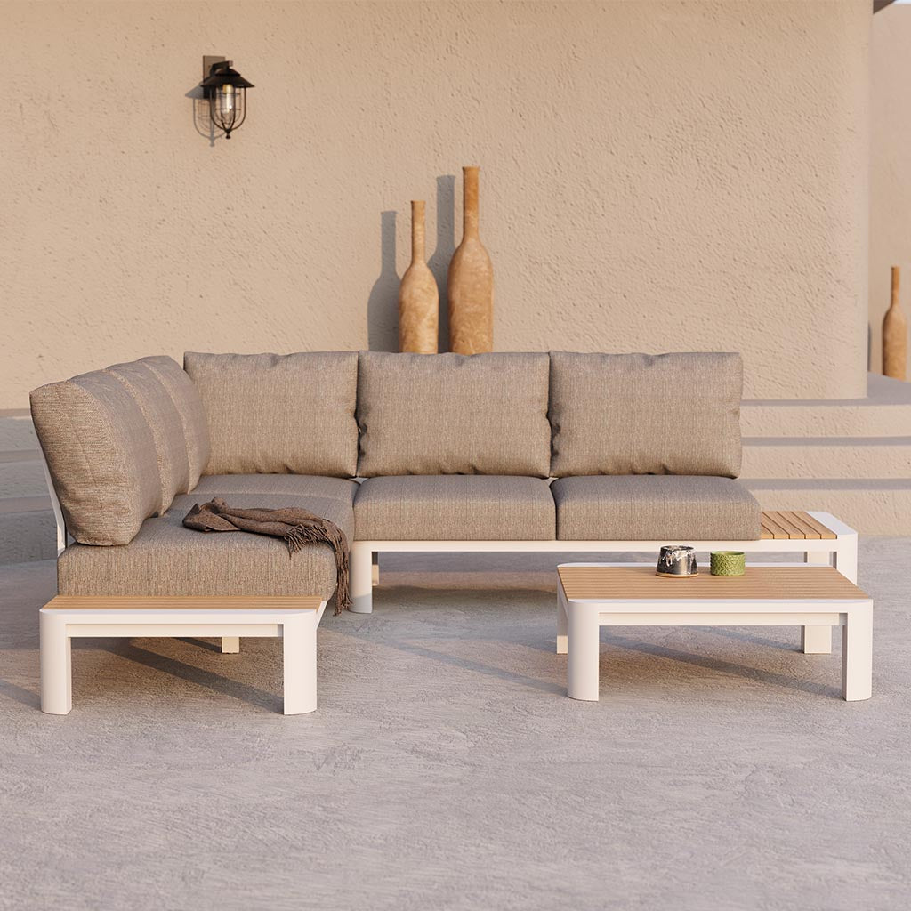 Entertain in style with the new Nakarin 5-seater corner lounge from Dress Your Space. This modern outdoor corner lounge brings a look of sleek and sophistication to your outdoor living space with high-quality materials.