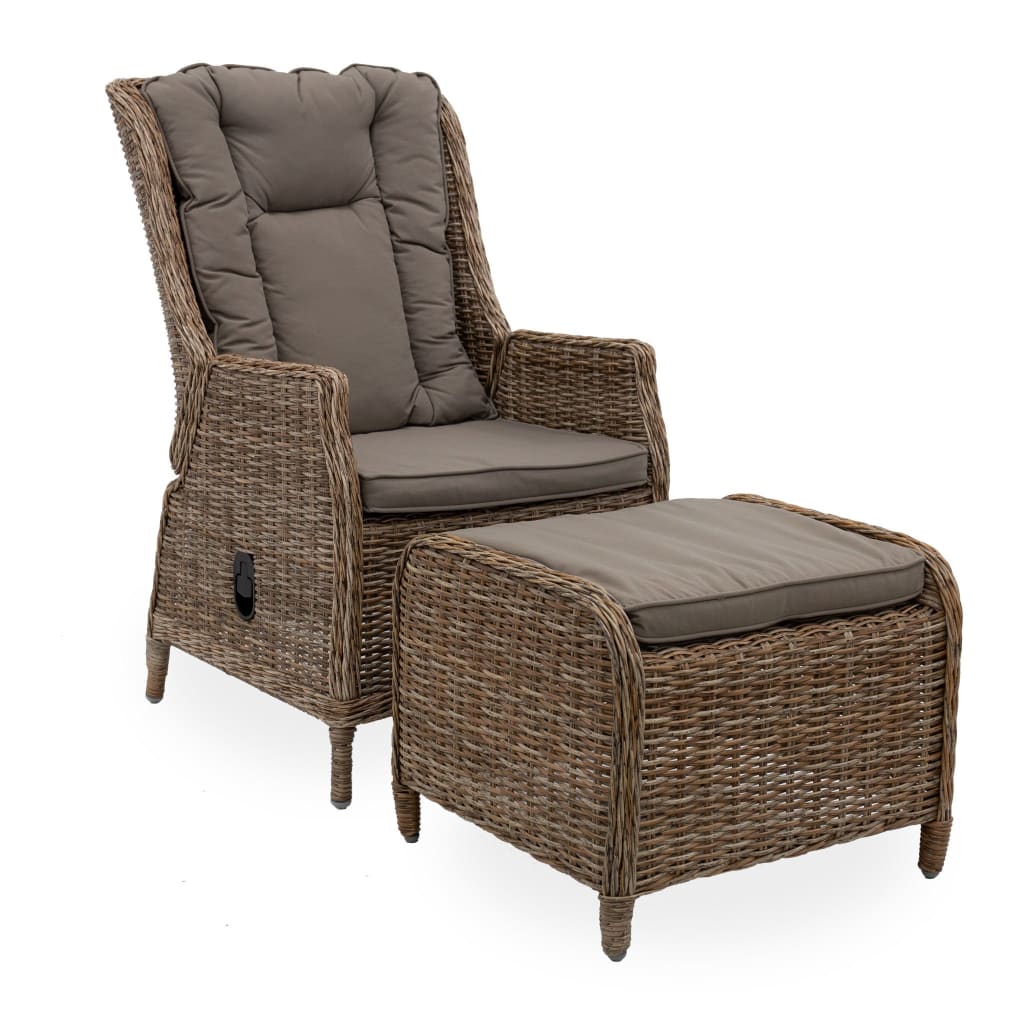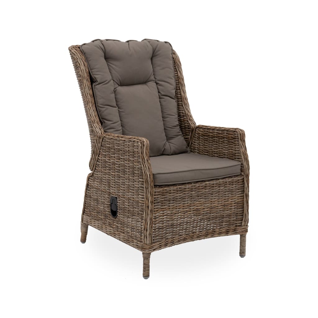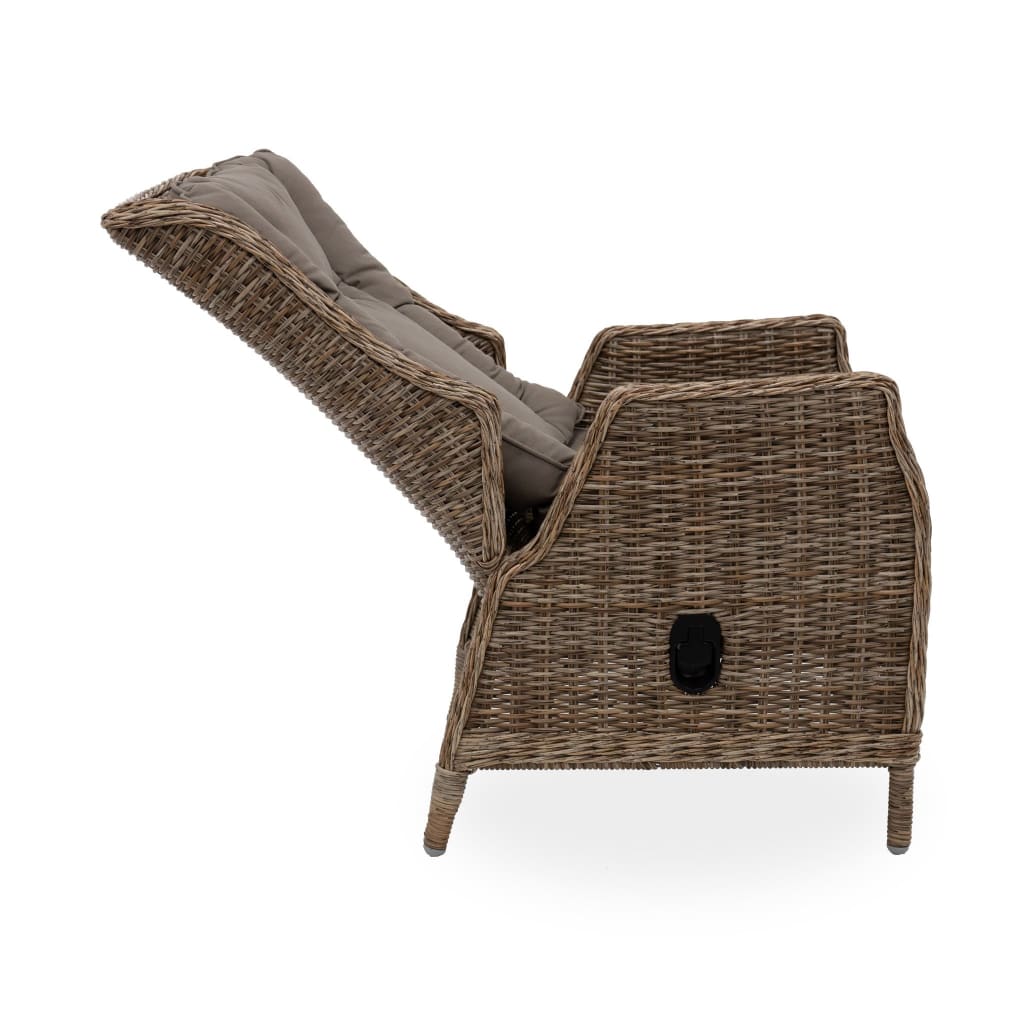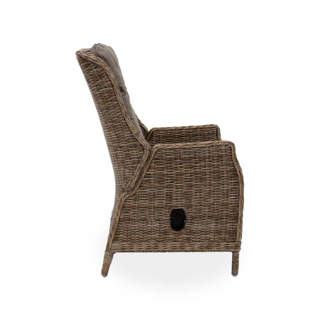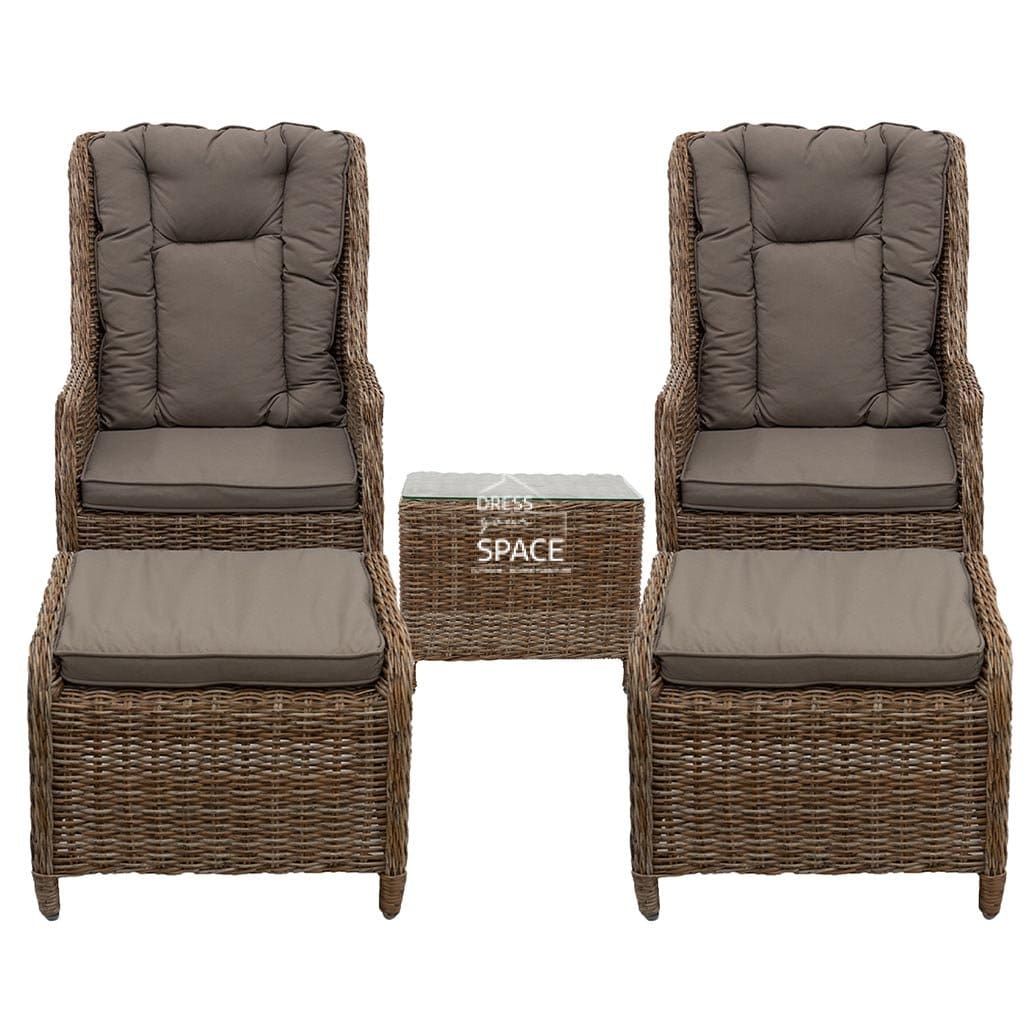 Featuring handwoven HDPE wicker, aluminium frame and Olefin covered cushions, the Elizabeth/Lisbon Recliner Set is designed for the outdoors and is easy to clean, simply hose with fresh water or wipe with a damp cloth. The reclining chairs utilise a Thydraulic mechanism for recliner functionality.