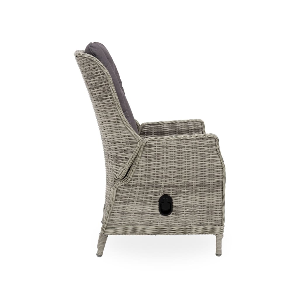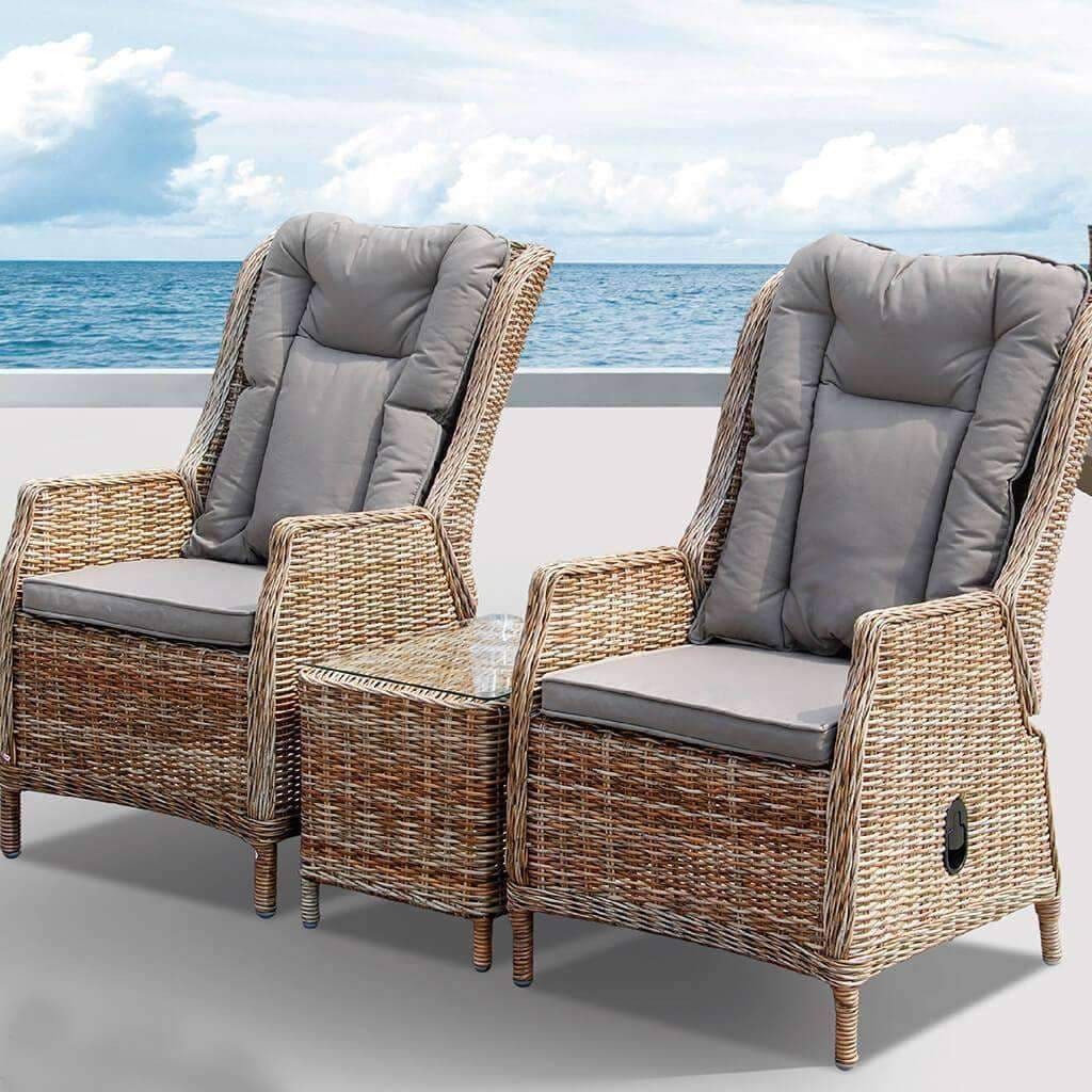 Featuring handwoven HDPE wicker, an aluminium frame and Olefin covered cushions on the outdoor loungers, the Elizabeth/ Lisbon Recliner Set is designed for the outdoors and is easy to clean. Simply hose with fresh water or wipe with a damp cloth.