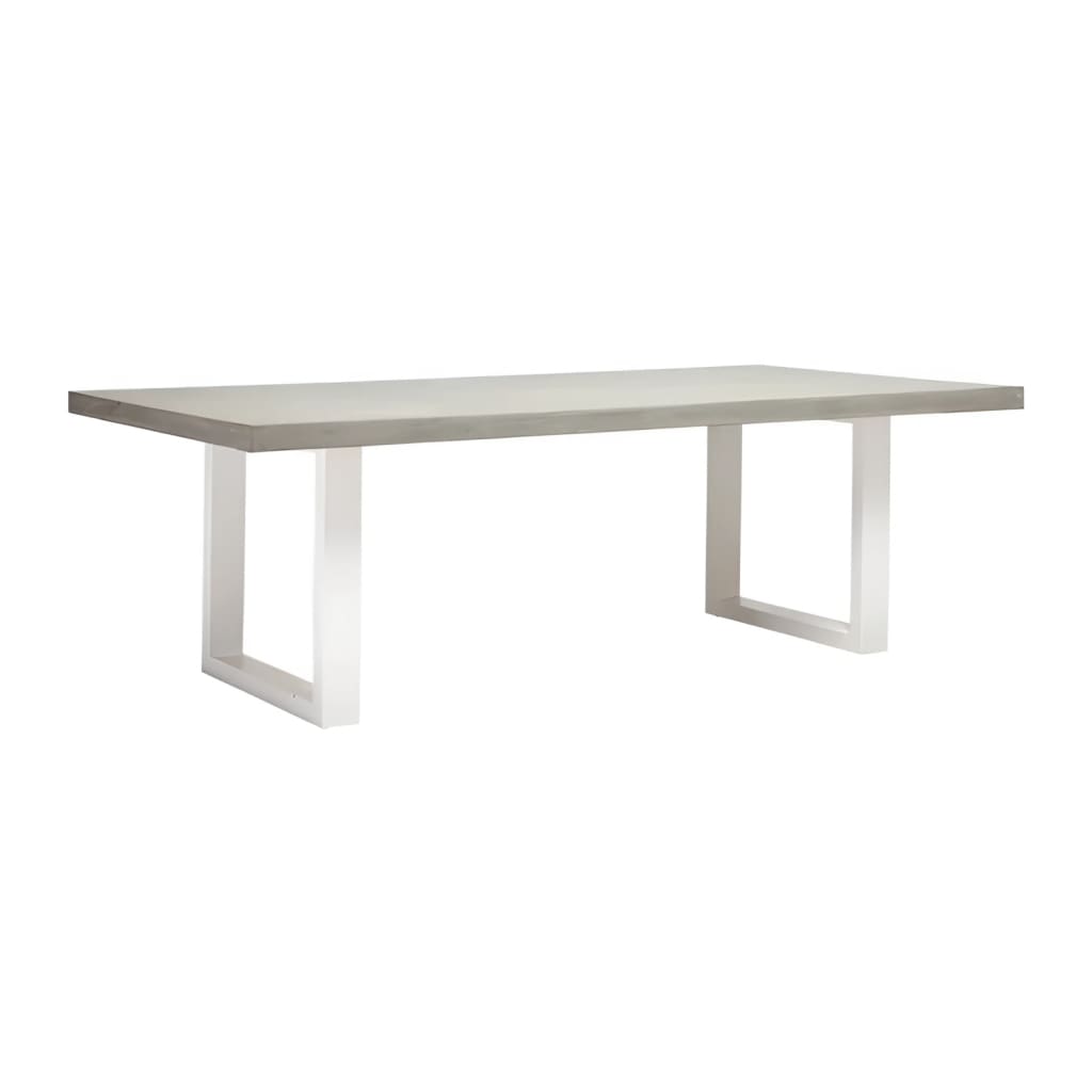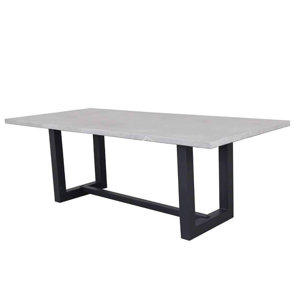 The Leon Concrete Dining Table features a solid and bold concrete table top with a chunky Charcoal aluminium frame