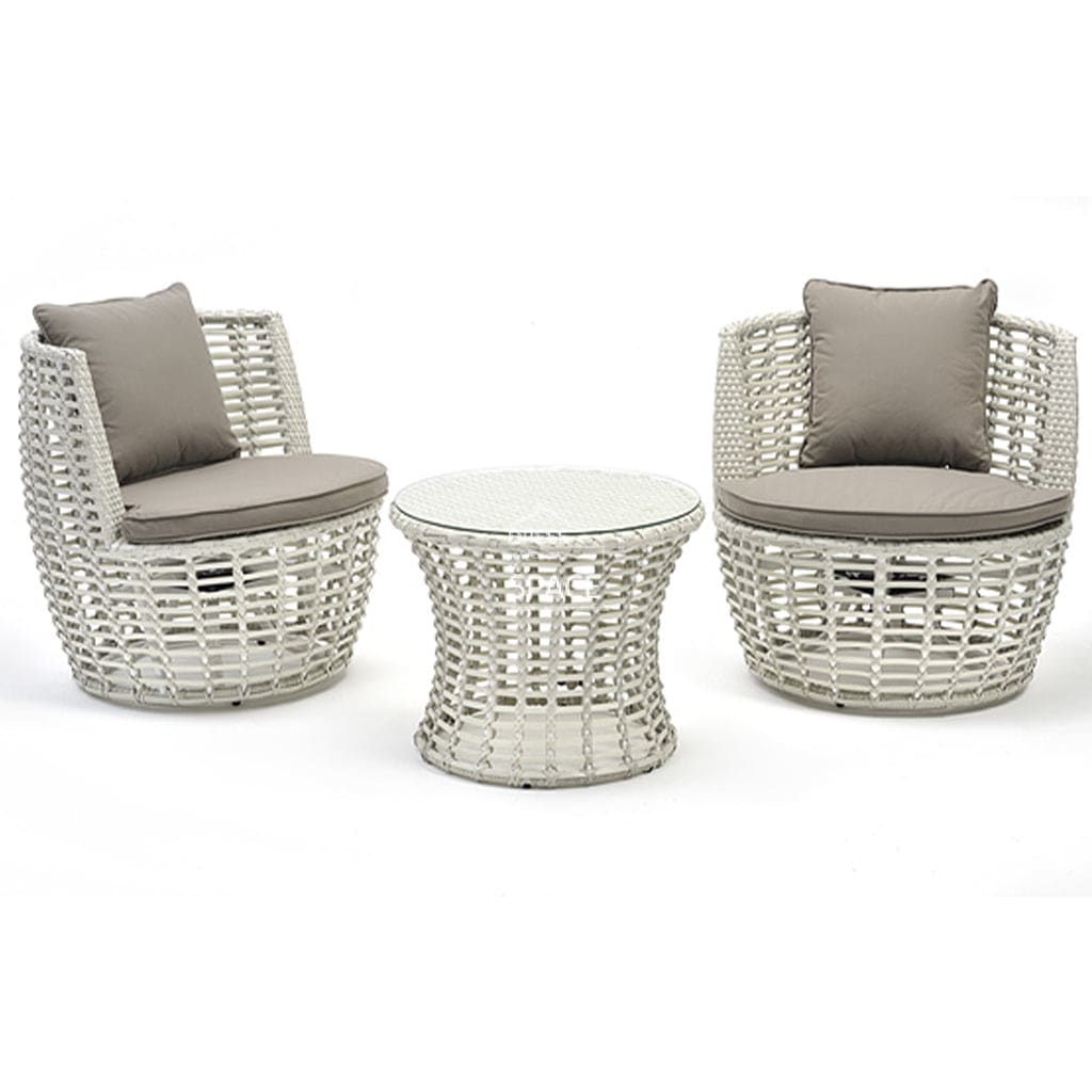 Enjoy modern style, compact convenience, and comfort with the Monza 3 Piece Swivel Set – Grey White, perfect for any outdoor retreat.