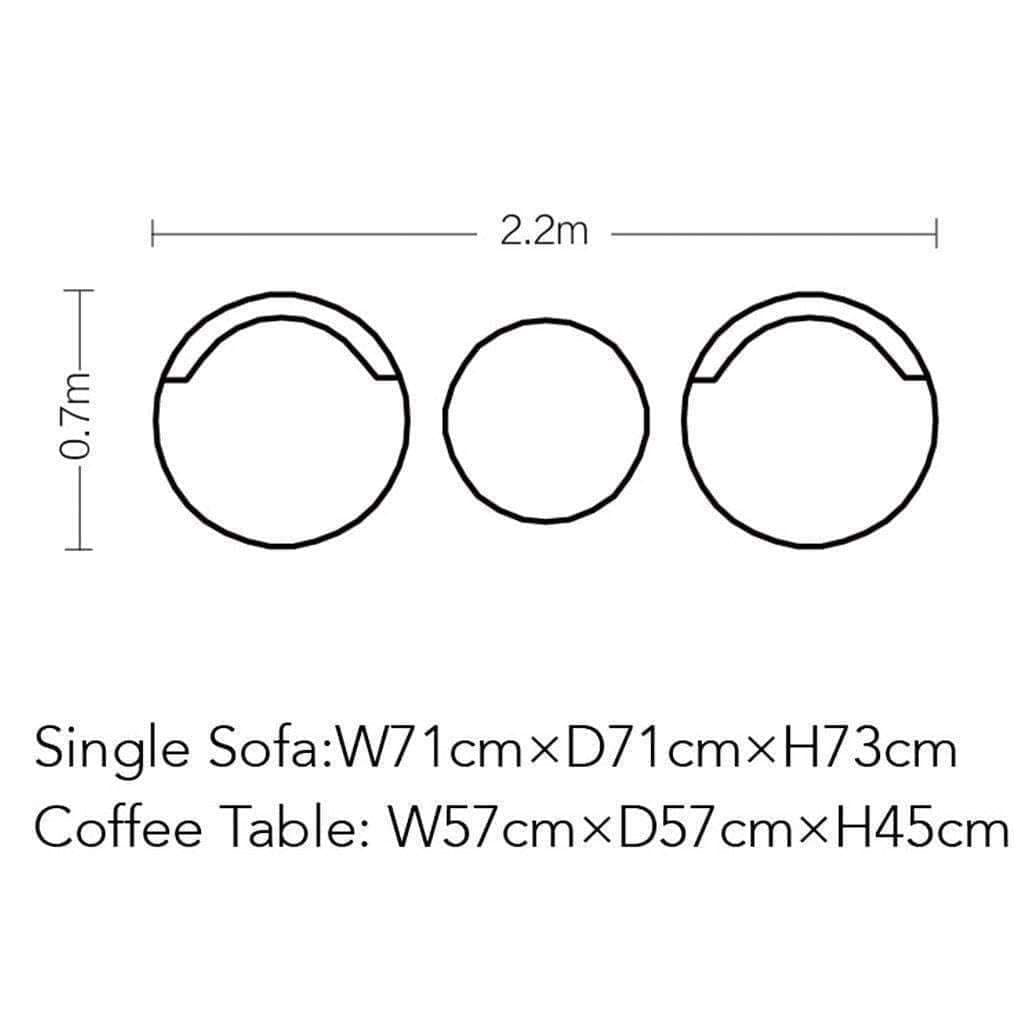 Coffee Table: 57cm W × 57cm D × 45cm H