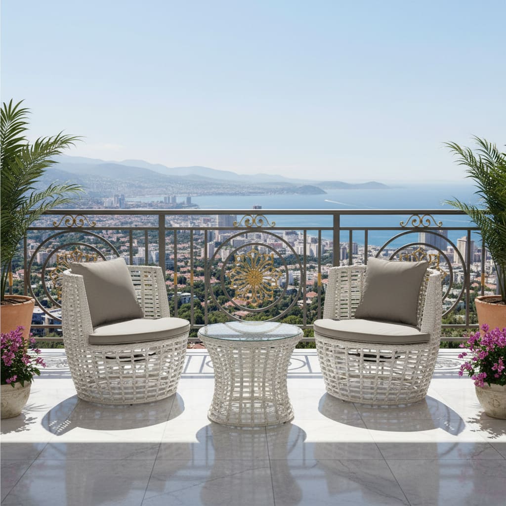 Ideal for small balconies, patios, garden nooks, or a parents’ retreat, the Monza 3 Piece Swivel Set combines comfort, style, and versatility in a compact design.