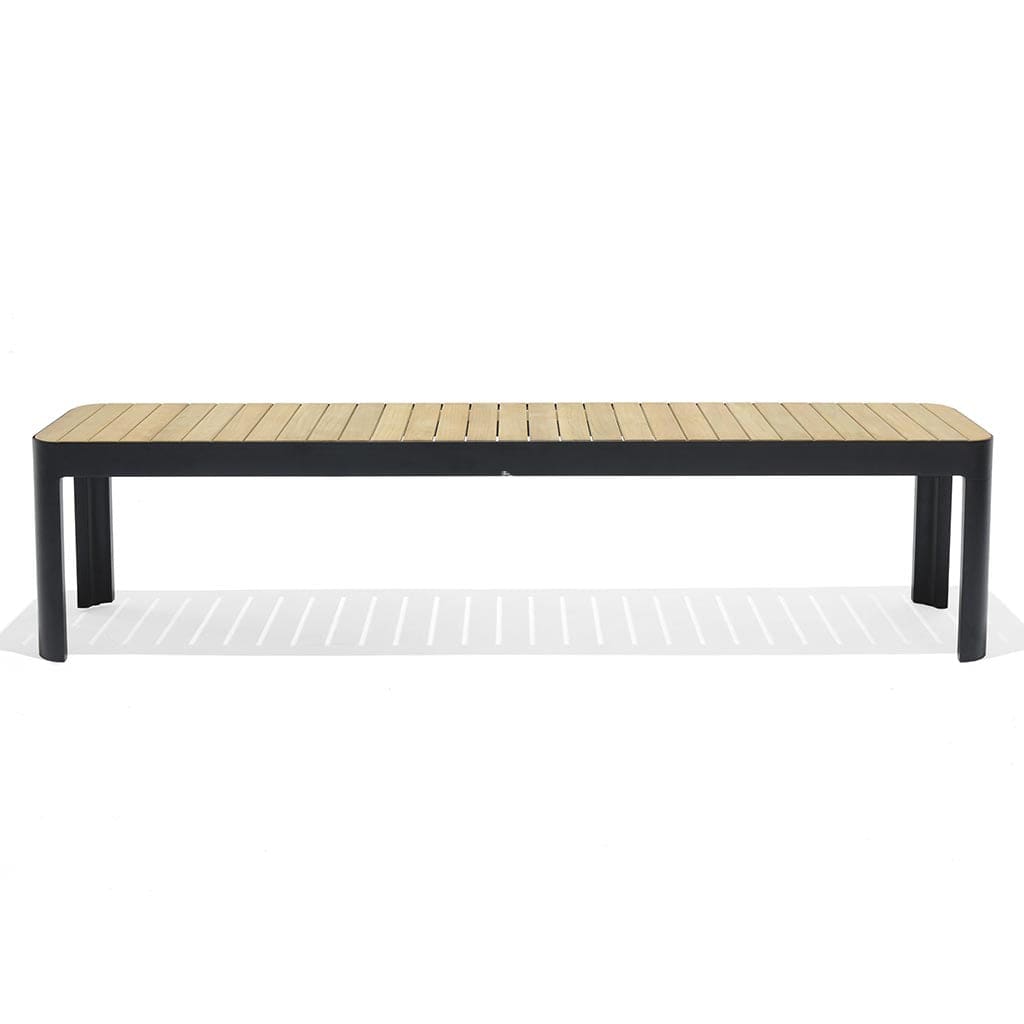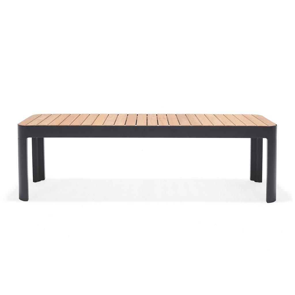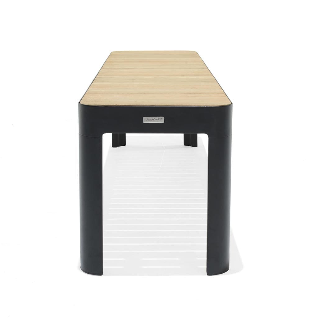 The Portals Bench is an eye-catching and quality design in one. The elegant black aluminium frame is superbly accompanied by the FSC-certified teak, offering extremely durable and visually striking bench seat.