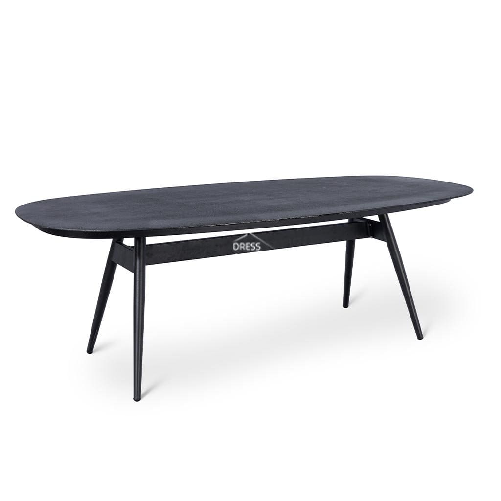 The Simon table is constructed of a powder coated aluminium frame and a tempered glass, coated in spraystone, top.