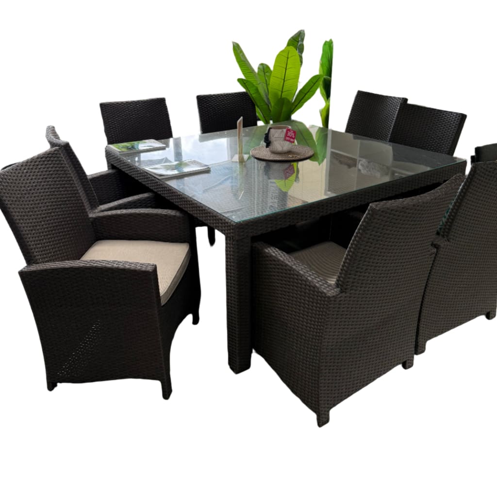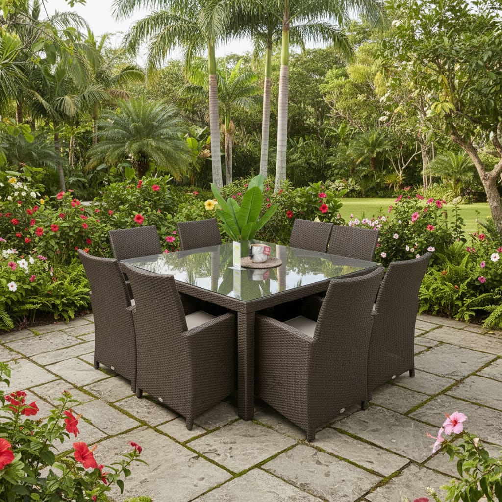 Perfect for stylish outdoor dining, the Stanley & Mirage 9 Piece Set combines durability, comfort, and modern design. Ideal for patios, verandahs, or garden spaces, this set is built to withstand the elements while offering a sleek, contemporary look.