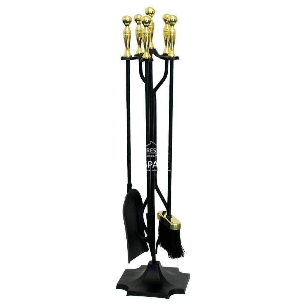 This Wood heater Tool Set is ideal for use with your charcoal BBQ, Pizza Oven, Fireplace or fire pit. Black/Brass Plated 4 pce + stand - Heavy Duty Classic Size: 77cm HTool length: Brush and shovel 49cm,...