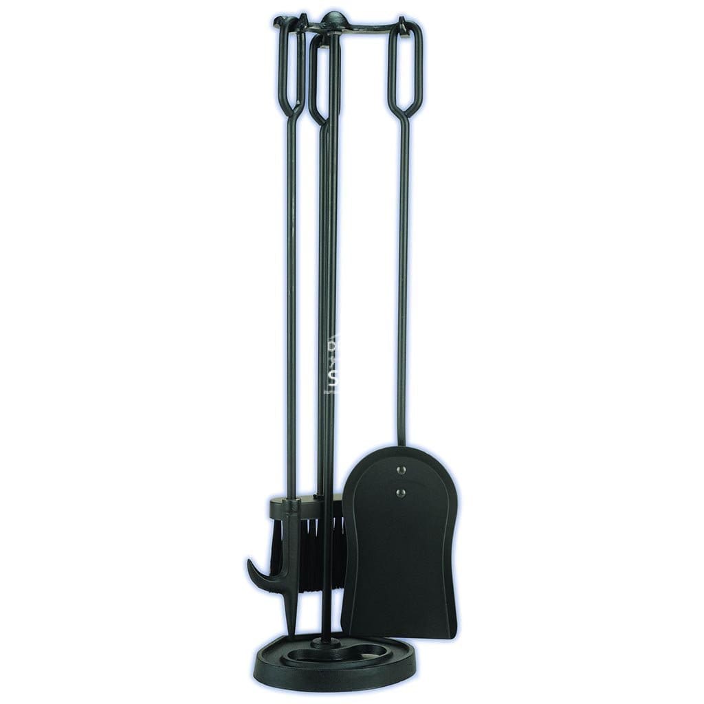 This Wood heater Tool Set is ideal for use with your charcoal BBQ, Pizza Oven, Wood Log Fireplace or fire pit. 3 Piece Plus Stand- Pokeroller- Shovel- Brush Material: Steel/Wood