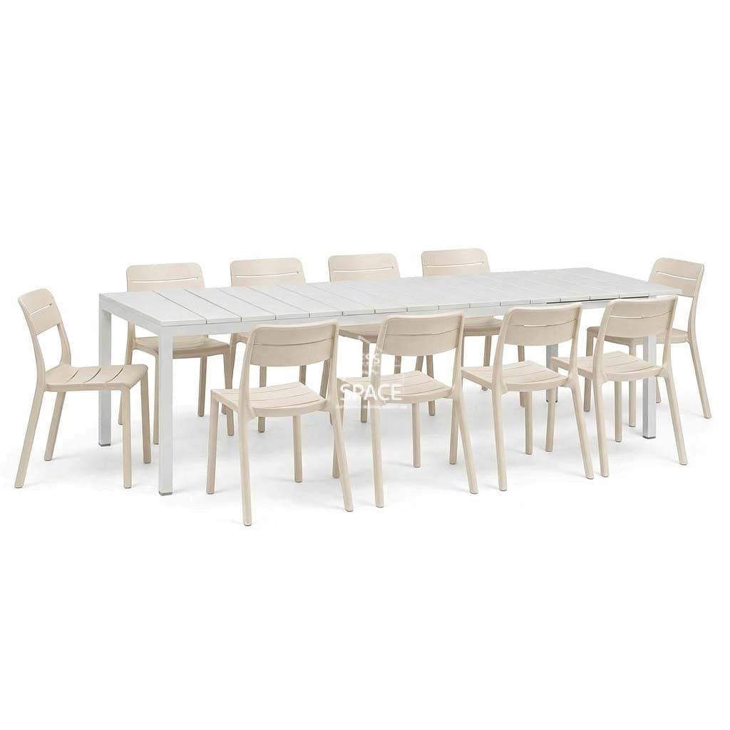 Nardi Rio Resin White Ext. & Cassia Corda Armless Chairs 7, 9 or 11 piece Dining Setting