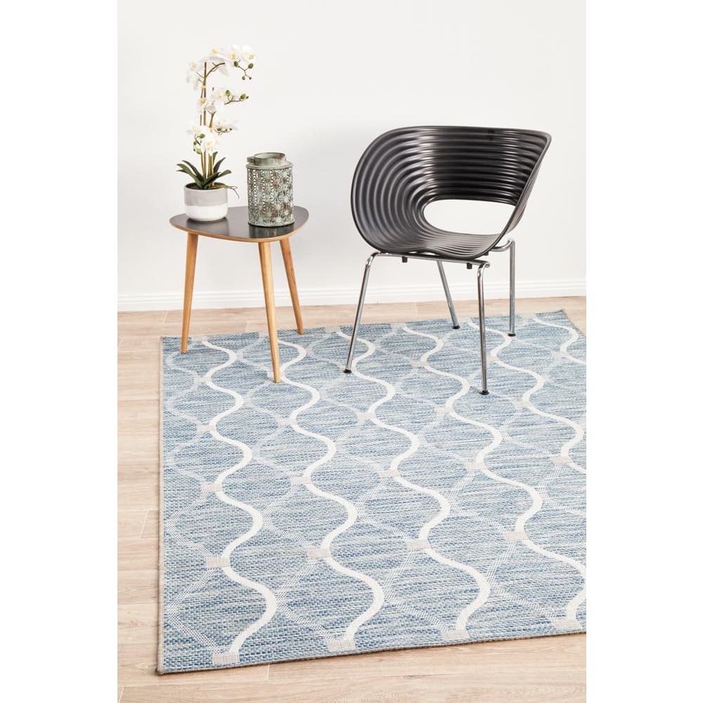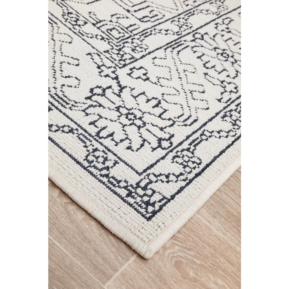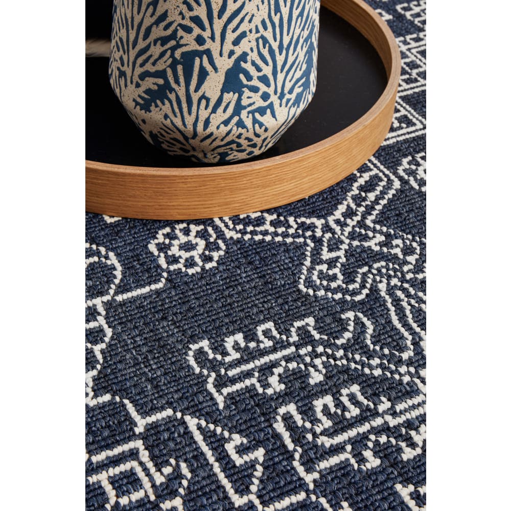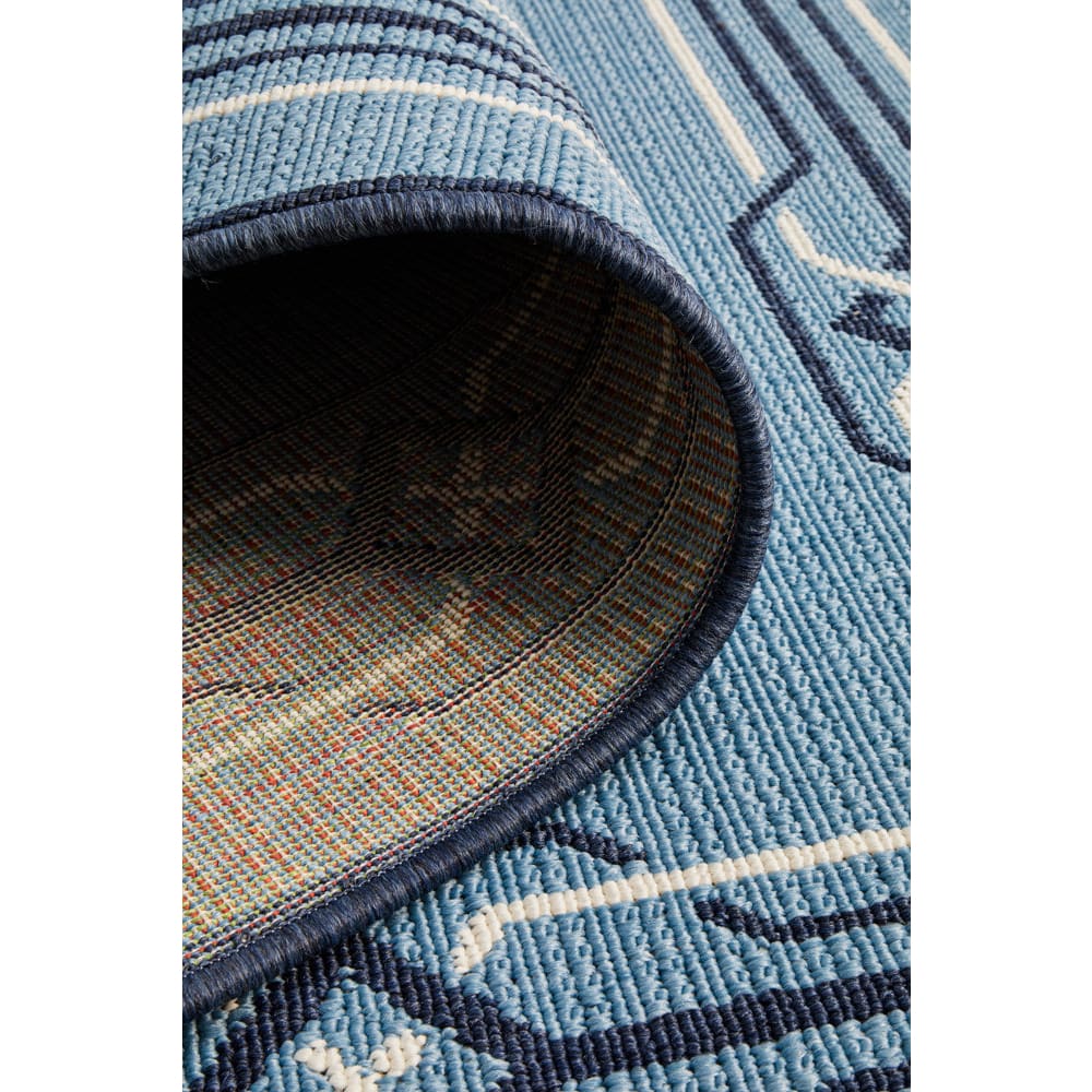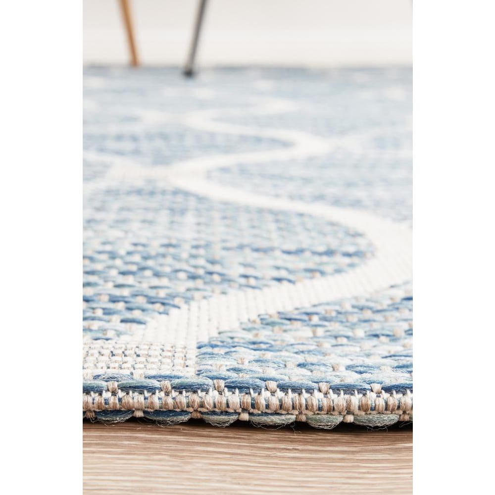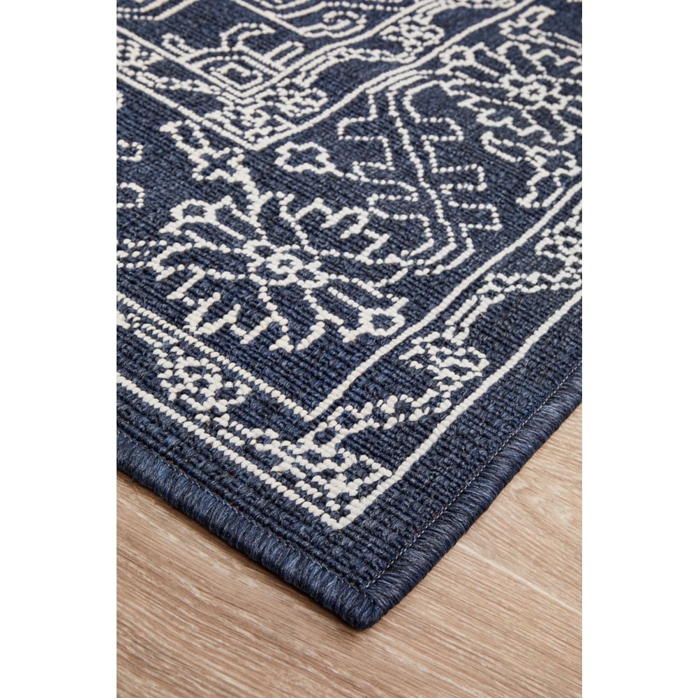Adorned with a navy and white border, this simple but elegant design offers effortless style. This easy-care collection is designed to be used outdoors as well as indoors, these rugs are water resistant and will...