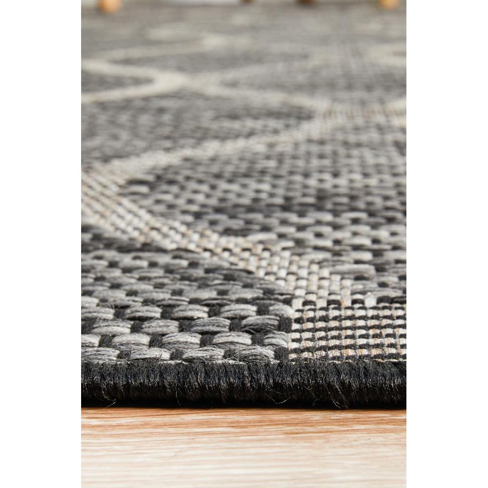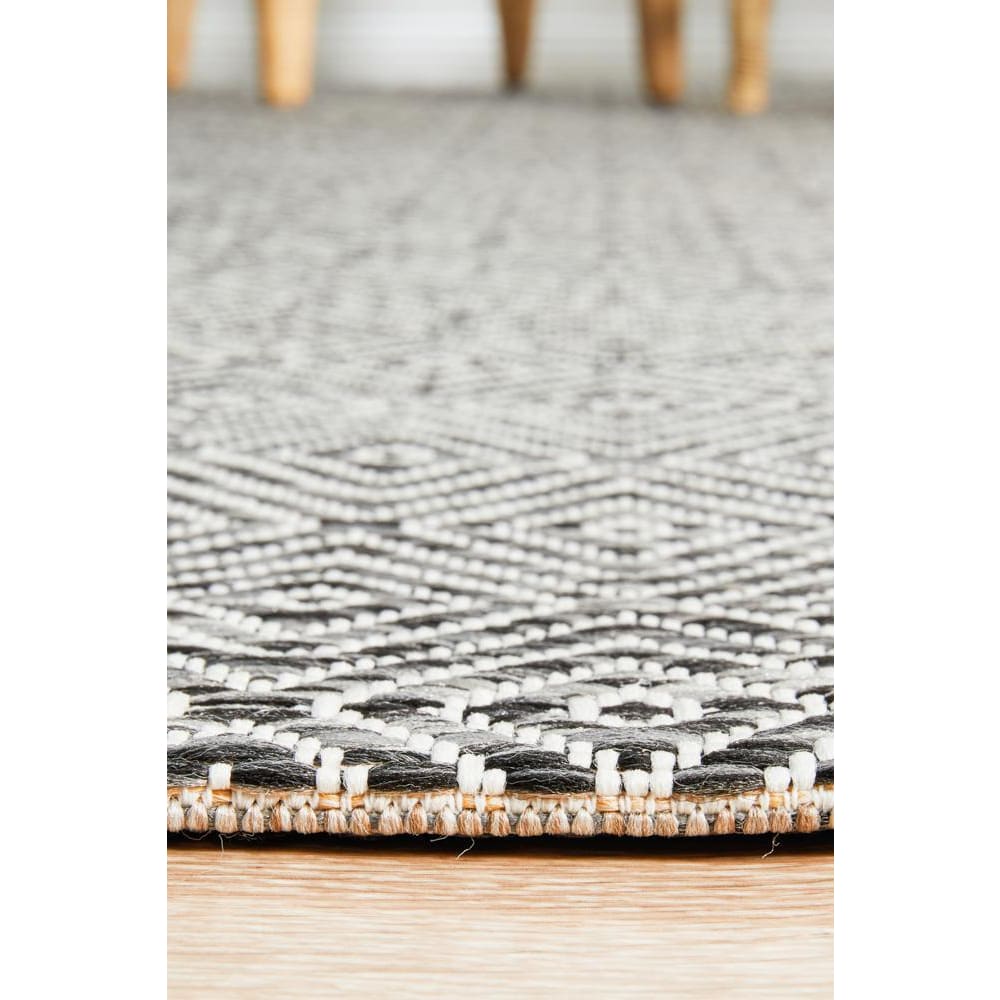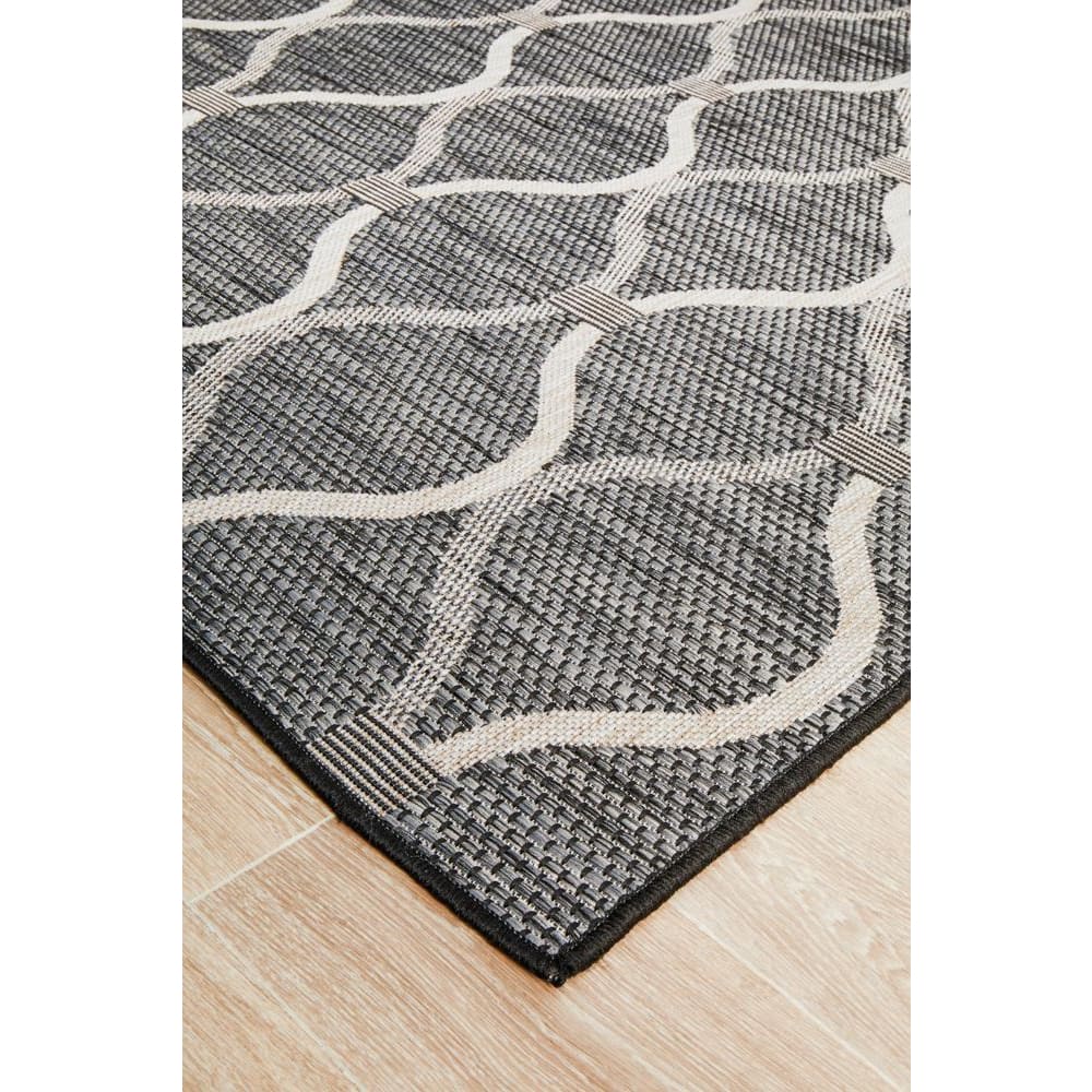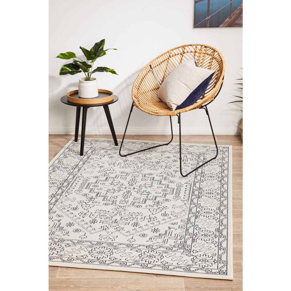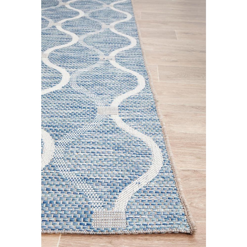 Adorned with a navy and white border, this simple but elegant design offers effortless style. This easy-care collection is designed to be used outdoors as well as indoors, these rugs are water resistant and will...