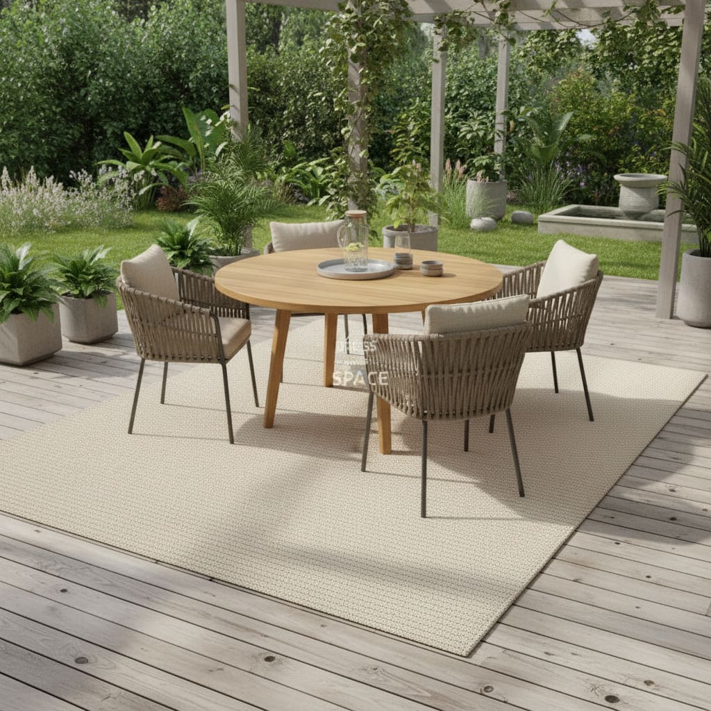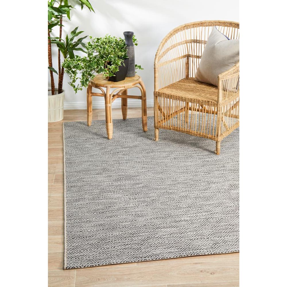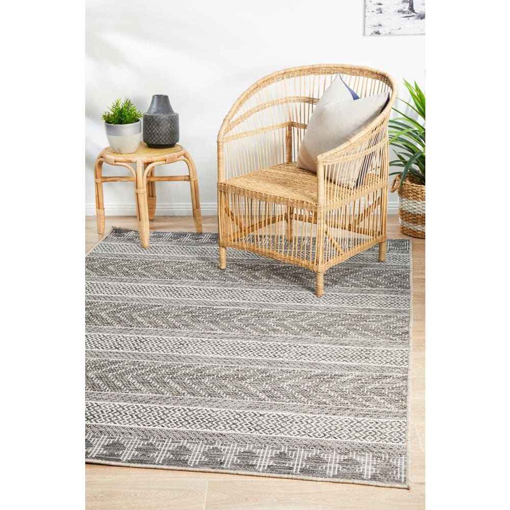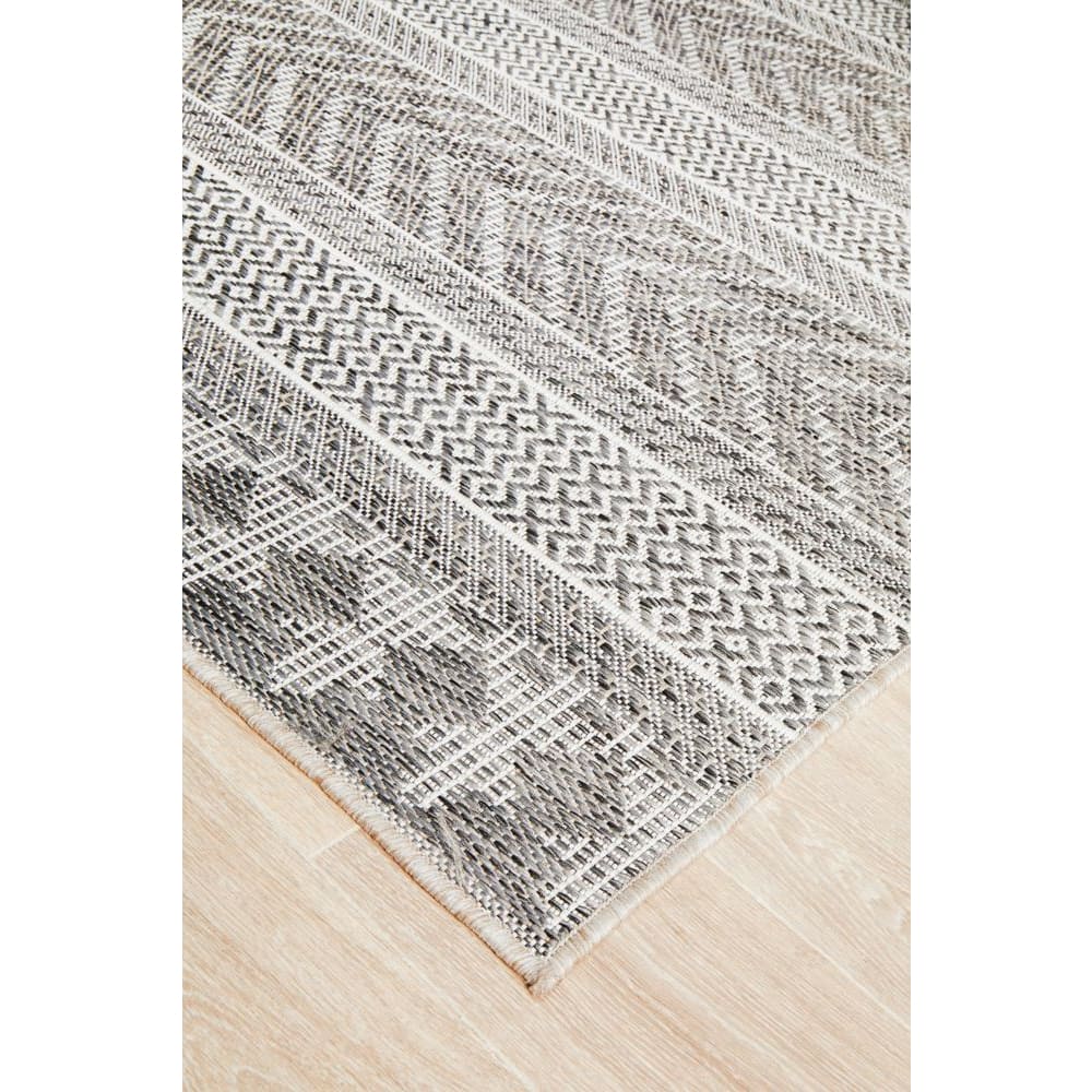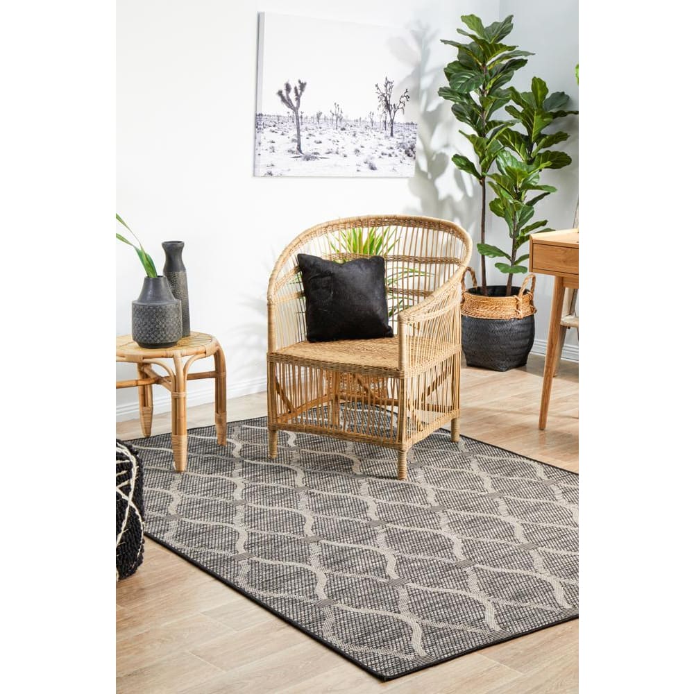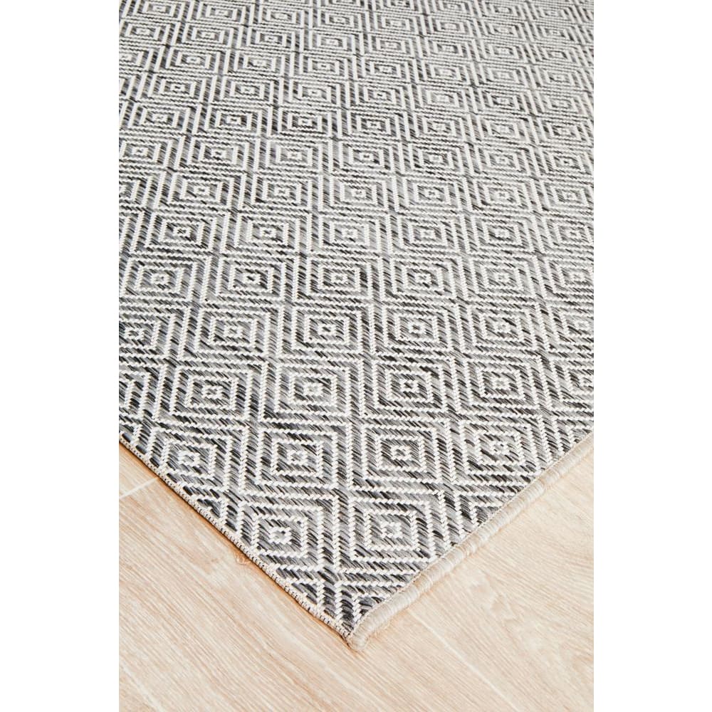 Adorned with a navy and white border, this simple but elegant design offers effortless style. This easy-care collection is designed to be used outdoors as well as indoors, these rugs are water resistant and will...