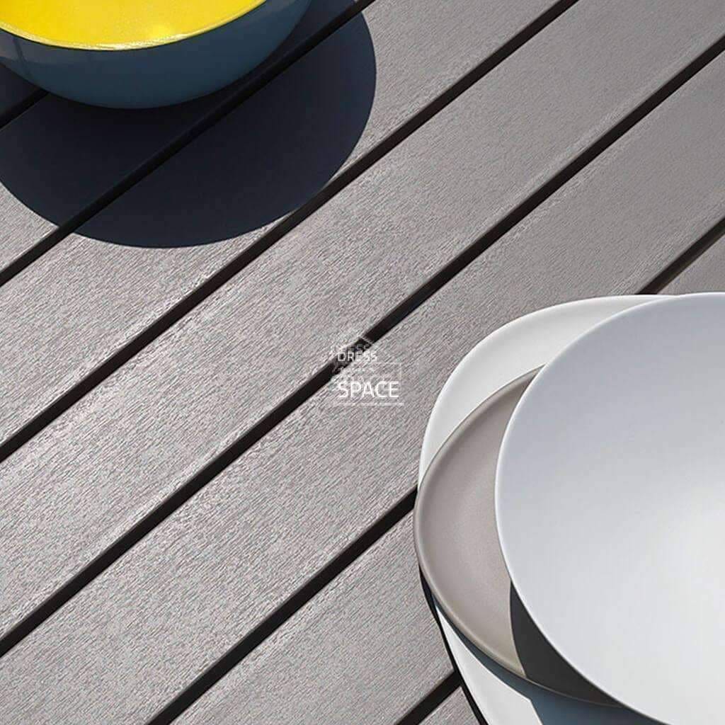 The new Brooklyn Dining Setting from Dress Your Space is a modern outdoor furniture setting that brings a look of sleek and sophistication to your outdoor living space.