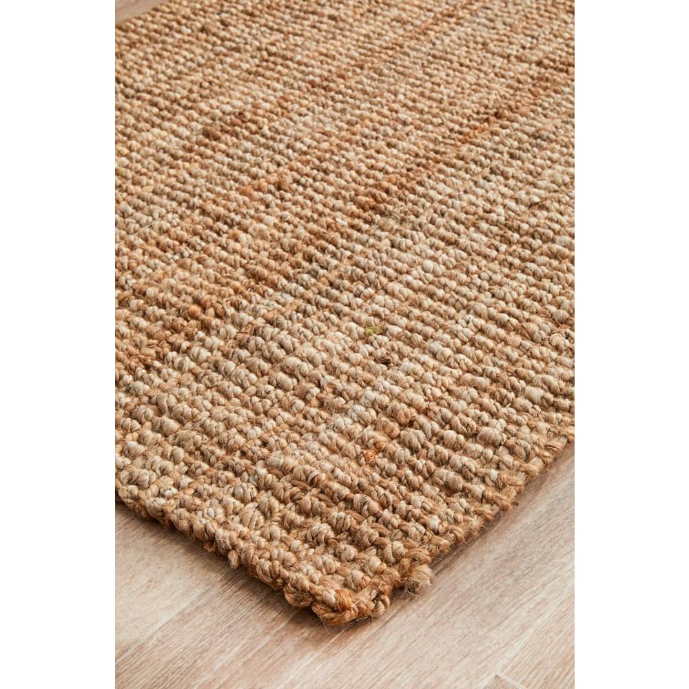 Jute is a popular choice, being very ecofriendly and cost effective. Often hand braided, this material gives an organic look and is easy to style. This material is moderately soft, and is not as durable as some other materials such as wool or heat-set polypropylene. Jute is highly absorbent, so best to avoid using this material in areas that may experience spills such as bathroom, kitchen or dining rooms.