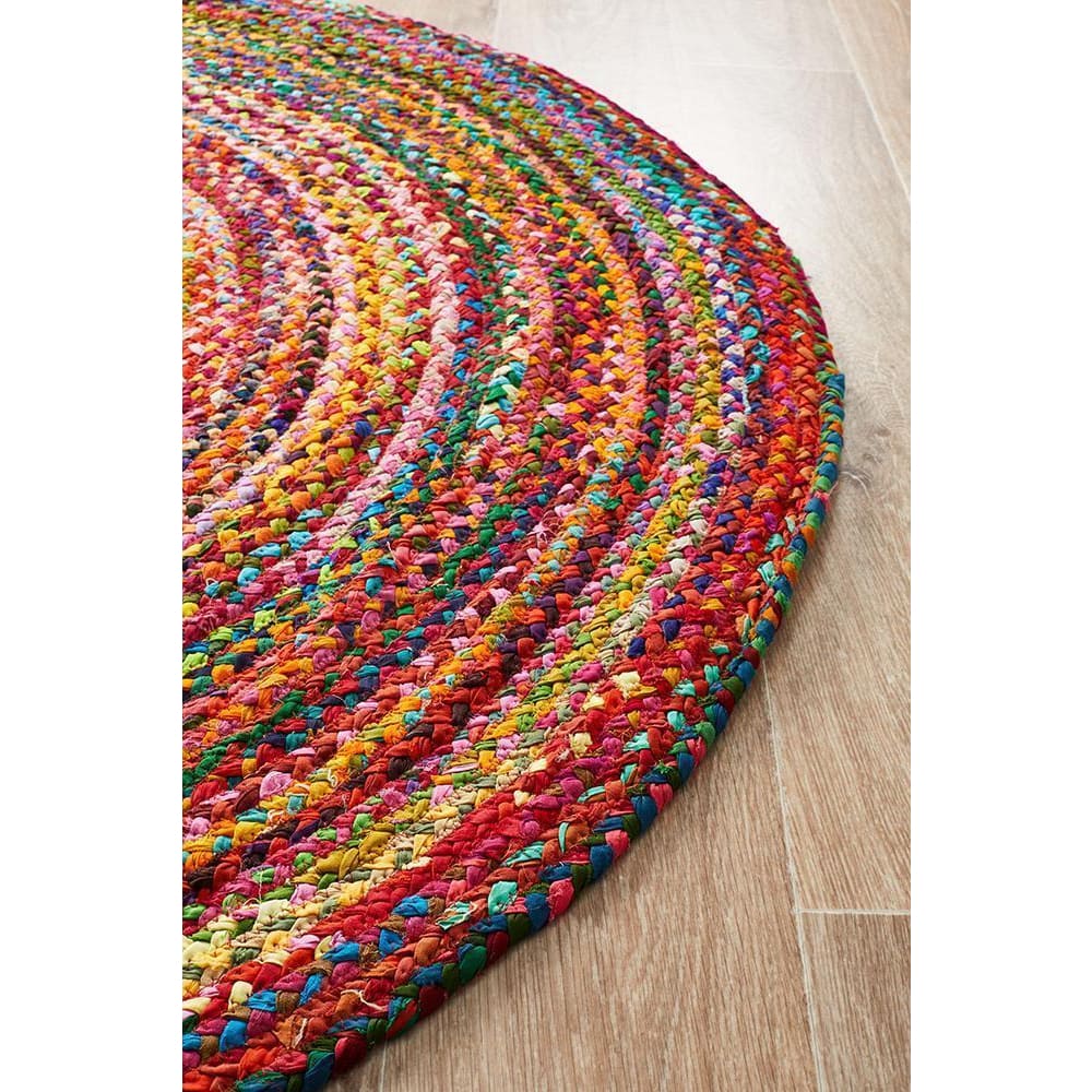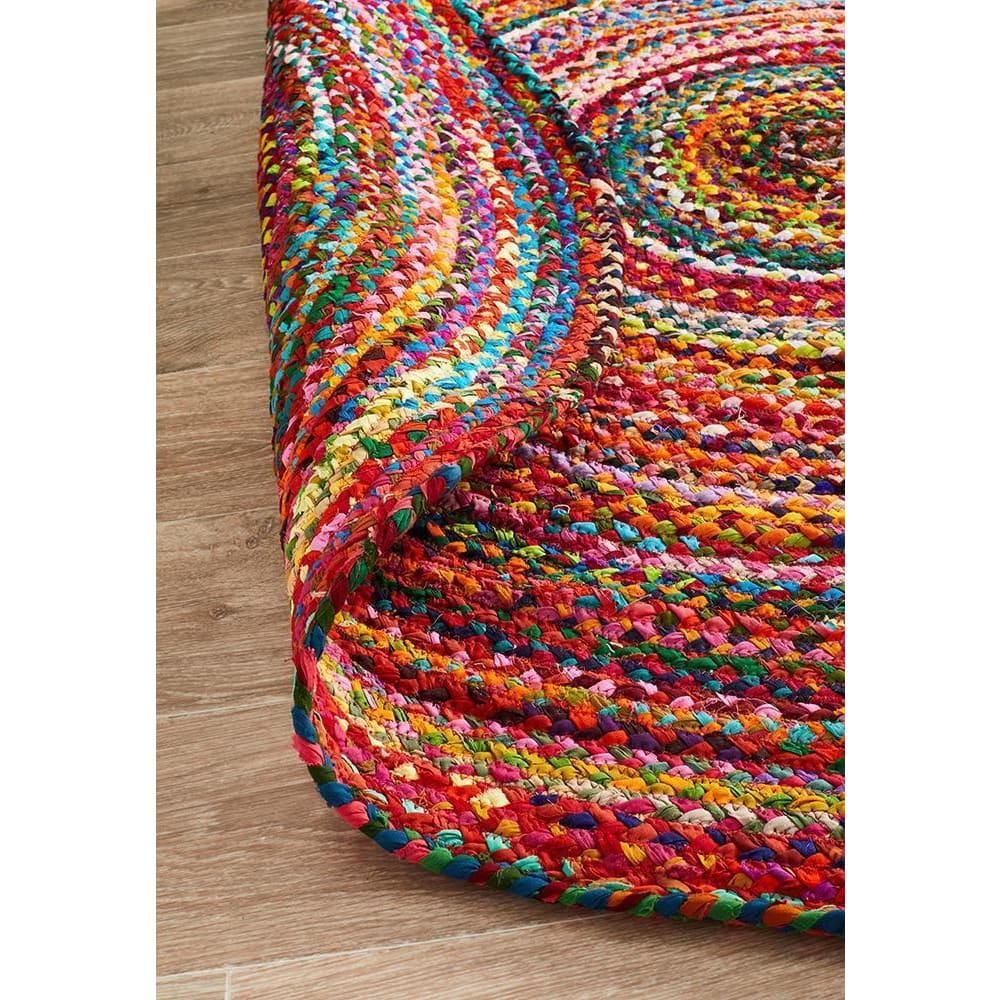 Materials are braided by hand and stitched together into the desired shape. This results in a desirable organic look and feel, and allows for a variety of textures. Hand braided rugs may appear less uniform in shape than other hand made rugs, as they are not made on a fixed loom. They will be flat woven and reversible.