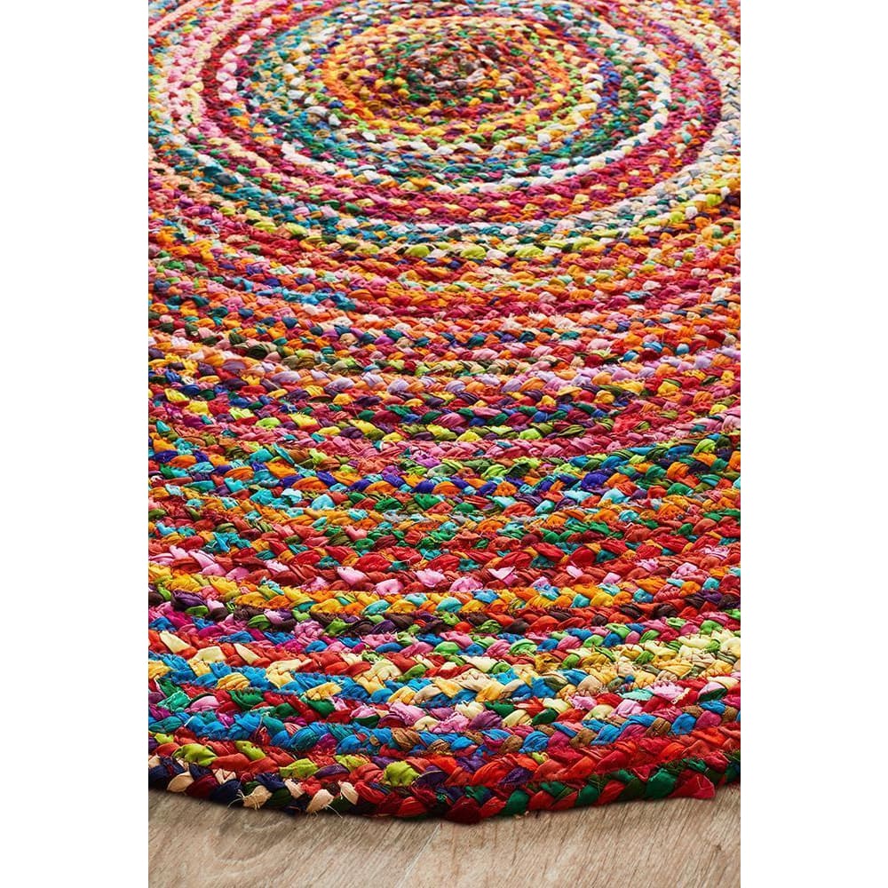The fabric is handwoven or braided by hand onto a loom. This gives the rug more structure and form than a hand braided or hand woven rug, and a more uniform size.
